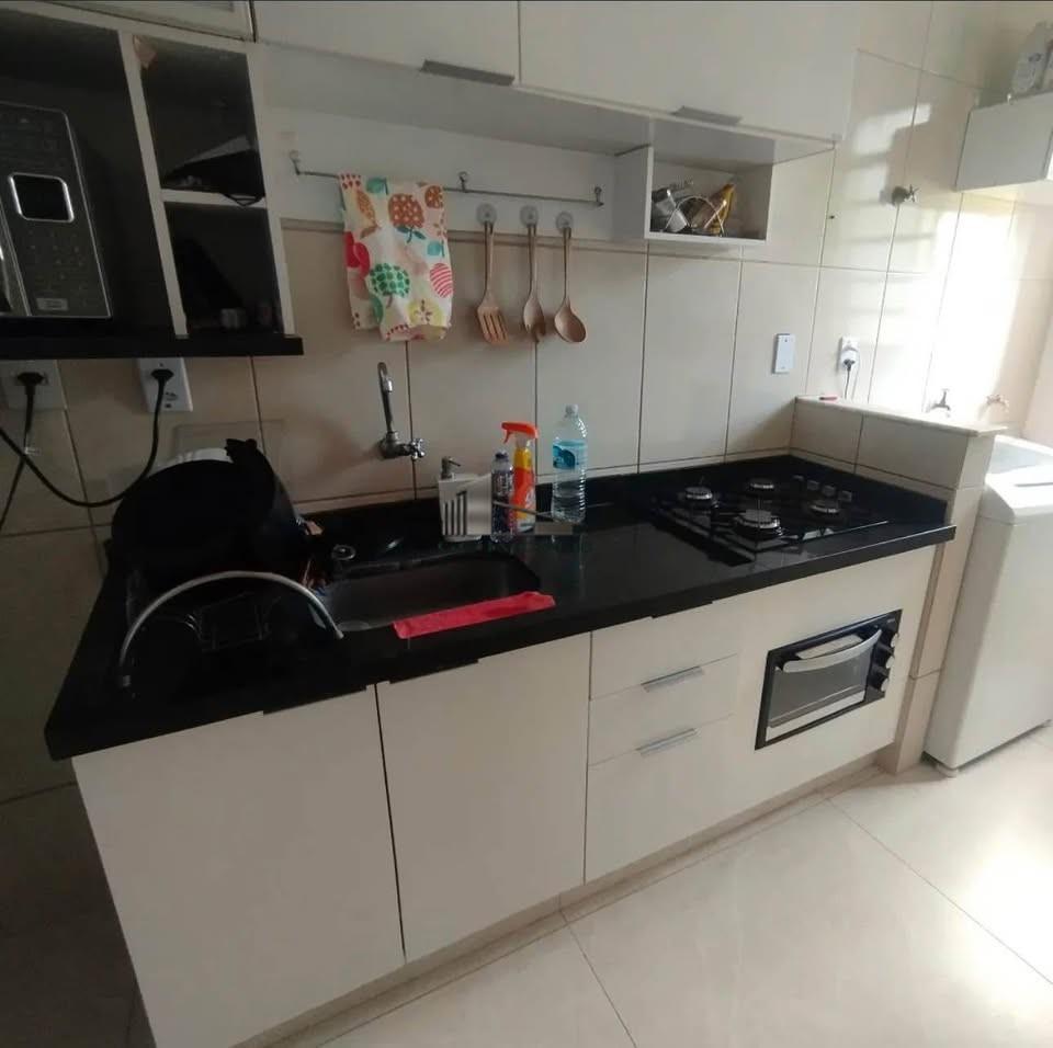 Apartamento todo com piso porcelanato, com 2 dormitórios, sendo um deles equipado com ventilador de teto. Conta com banheiro moderno com box blindex e balcão planejado, sala aconchegante, cozinha funcional com armários planejados, fogão cooktop e forno elétrico. Possui ainda garagem coberta para 1 veículo.