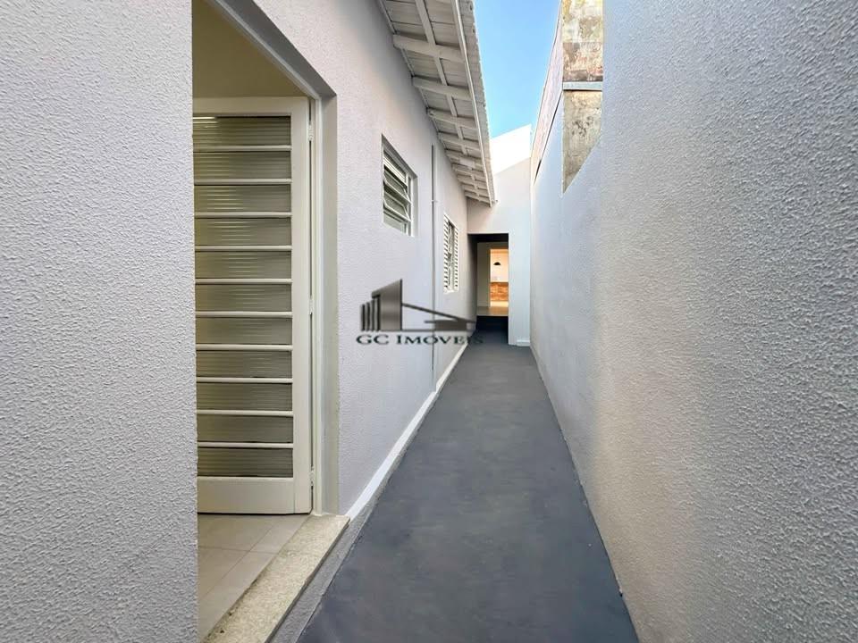 Casa toda em porcelanato, equipada com sistema de segurança. São 3 dormitórios, sendo 1 suíte, banheiro social. Conta com sala ampla, cozinha funcional com gabinete, fogão cooktop e gás canalizado, além de lavanderia coberta. O imóvel possui quintal espaçoso, área gourmet com churrasqueira e garagem coberta com capacidade para 2 veículos.