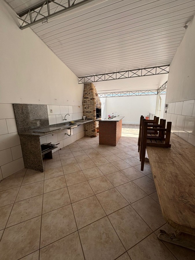 Com 4 dormitórios, sendo 1 suíte, dois quartos com armários planejados, banheiro social, sala de jantar com jardim de inverno, cozinha ampla com armários planejados, sala de TV e sala de recepção. Possui lavanderia coberta, 2 despensas e 1 banheiro nos fundos. Quintal amplo com área gourmet equipada com balcão e churrasqueira. Garagem com capacidade para 2 veículos.