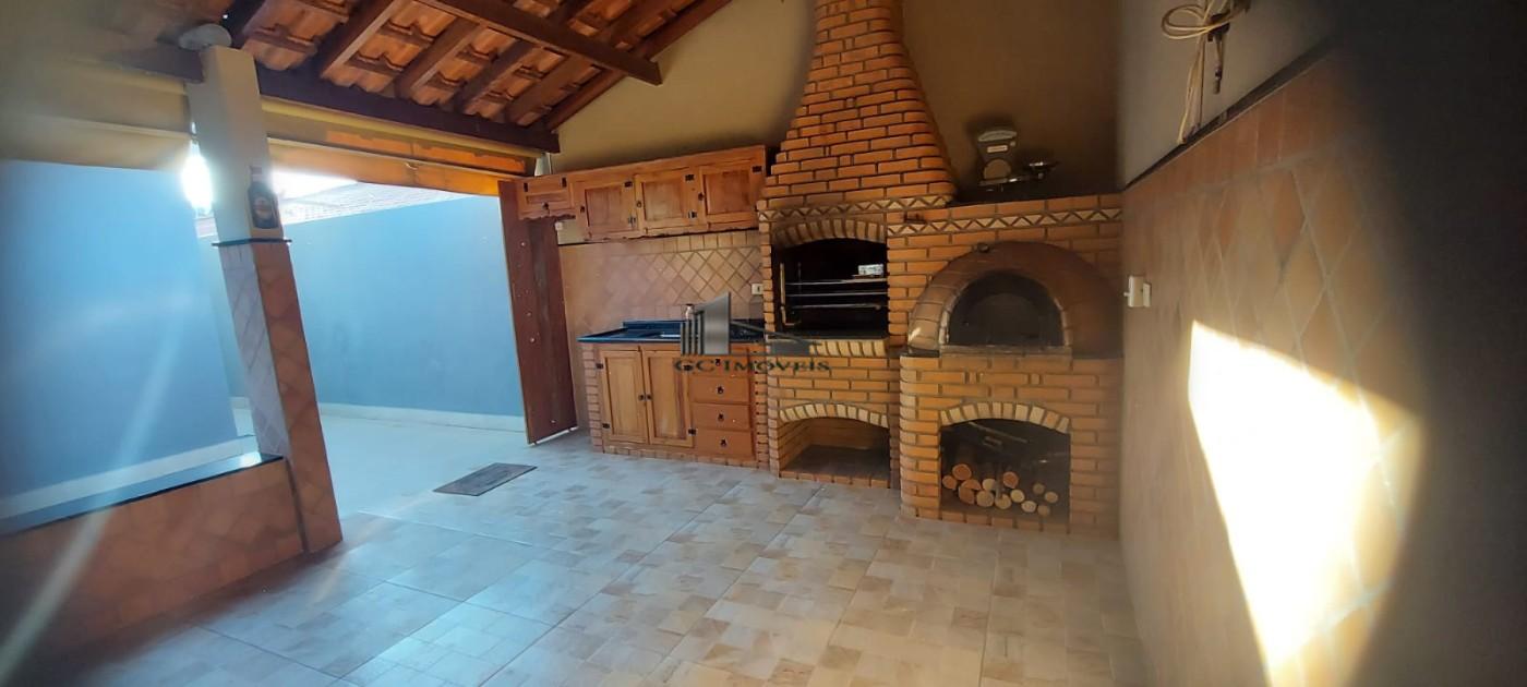 A residência conta com 3 quartos, sendo 1 suíte, todos com armários planejados, além de banheiro social, sala, cozinha e lavanderia. Nos fundos, há um espaço gourmet completo, com churrasqueira, forno a lenha, banheiro externo e um cômodo de apoio que pode ser adaptado conforme a necessidade.