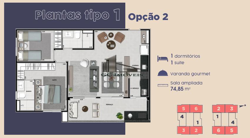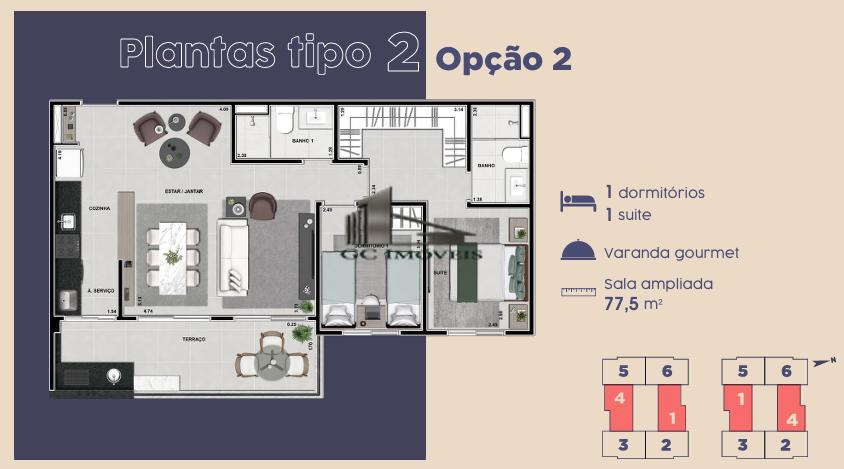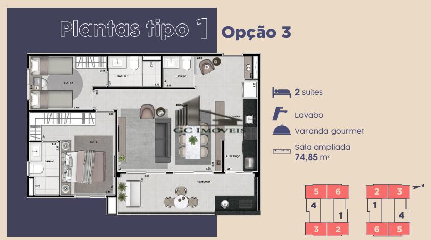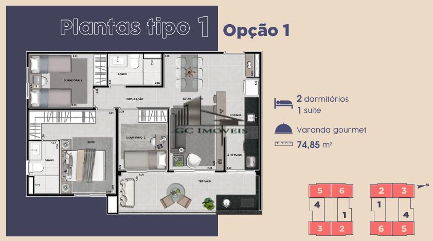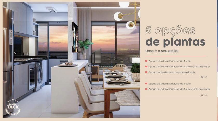 O Residencial Duo oferece apartamentos de 3 dormitórios (1 suíte) com 2 vagas de garagem e mais 4 opções de planta.