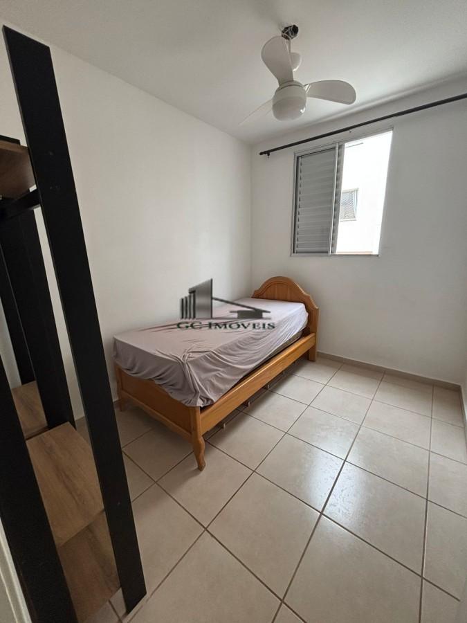 Apartamento totalmente mobiliado, incluindo sofá, painel, TV, mesa com 4 cadeiras, armários na cozinha, geladeira, fogão, máquina de lavar, cortinas na sala e no quarto principal, cama de casal, cama de solteiro e arara organizadora.