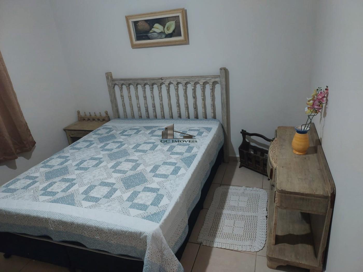 Com 2 dormitórios, possui 1 banheiro, sala integrada com a cozinha, área de serviço, área de lazer com churrasqueira e garagem com capacidade para 2 veículos.