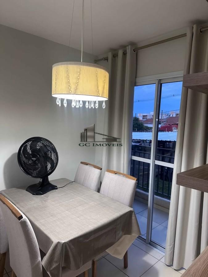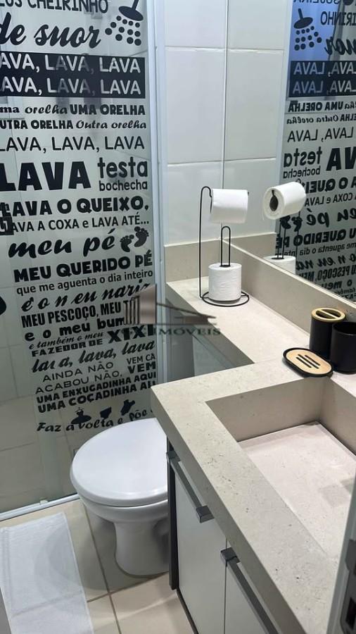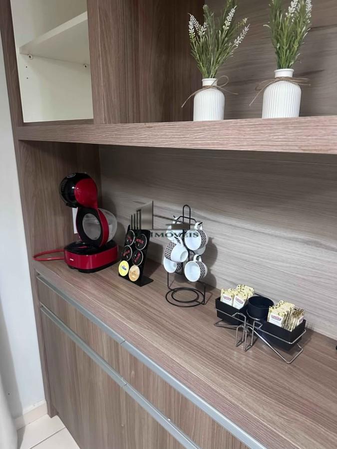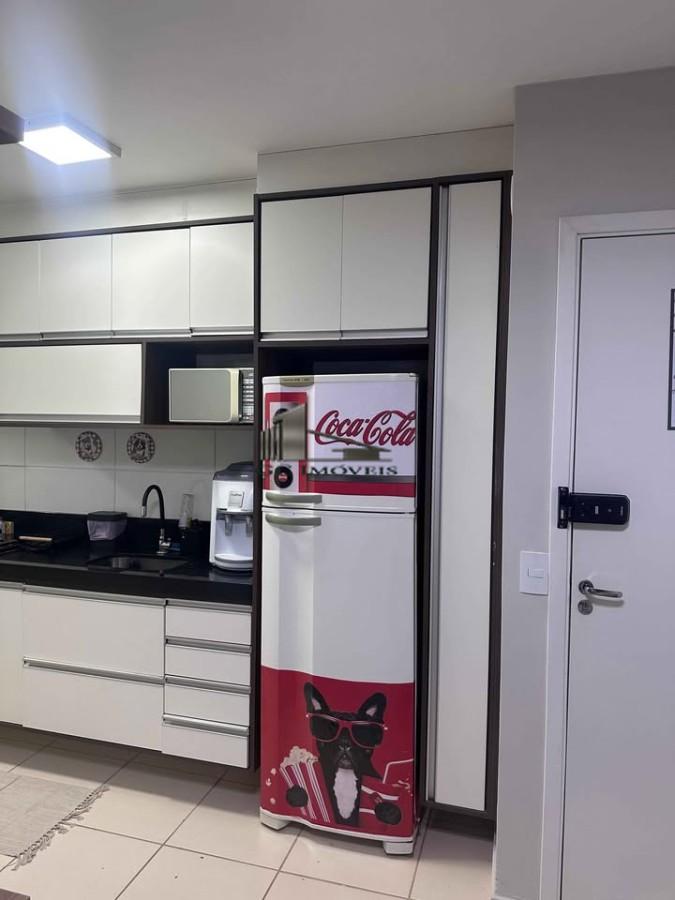 Com 2 dormitórios, sendo 1 com ar condicionado e o outro com ventiladro de teto, 1 banheiro social com box blindex e armário planejado, sala de TV integrada com a sala de jantar, sacada, cozinha repleta de armários planejados, fogão cooktop e forno elétrico. Garagem para 1 veículo.