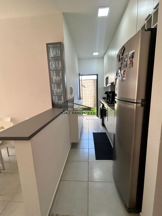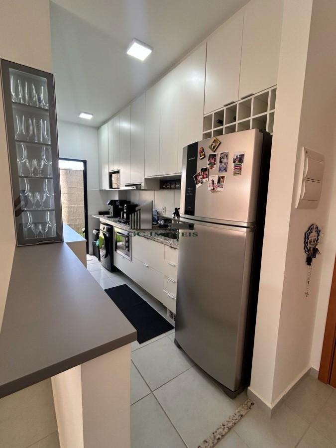 Com 2 dormitórios ambos com guarda roupa planejados, banheiro social com box blindex e armário, sala com painel de TV planejado, área de serviço, cozinha repleta de armários planejados com fogão cokotop, coifa e forno elétrico, quintal amplo de 40,53m². Garagem para 1 veículo.