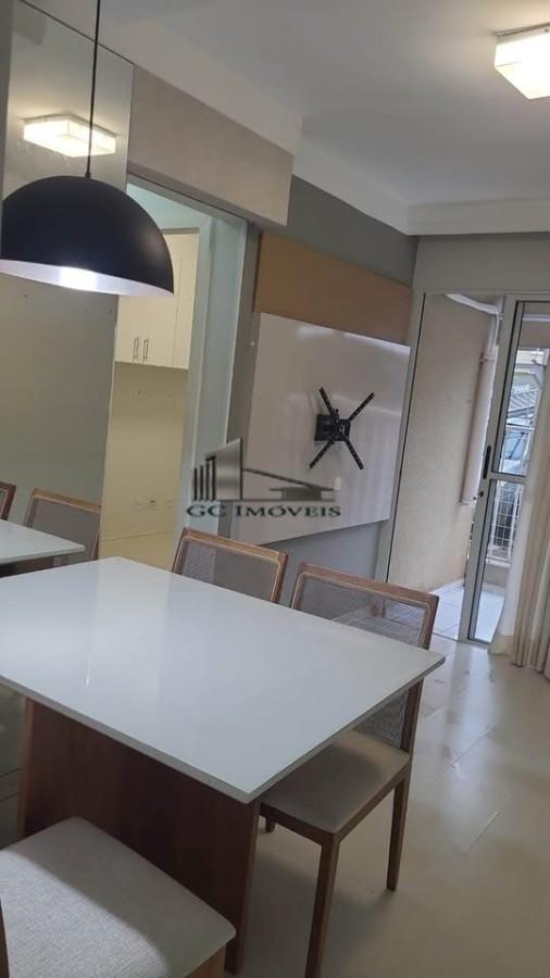 Com 2 dormitórios, 1 banheiro, sala de jantar integrada à sala de TV com painel, mesa para 4 lugares e porta divisória que garante mais privacidade à área íntima. Possui sacada.