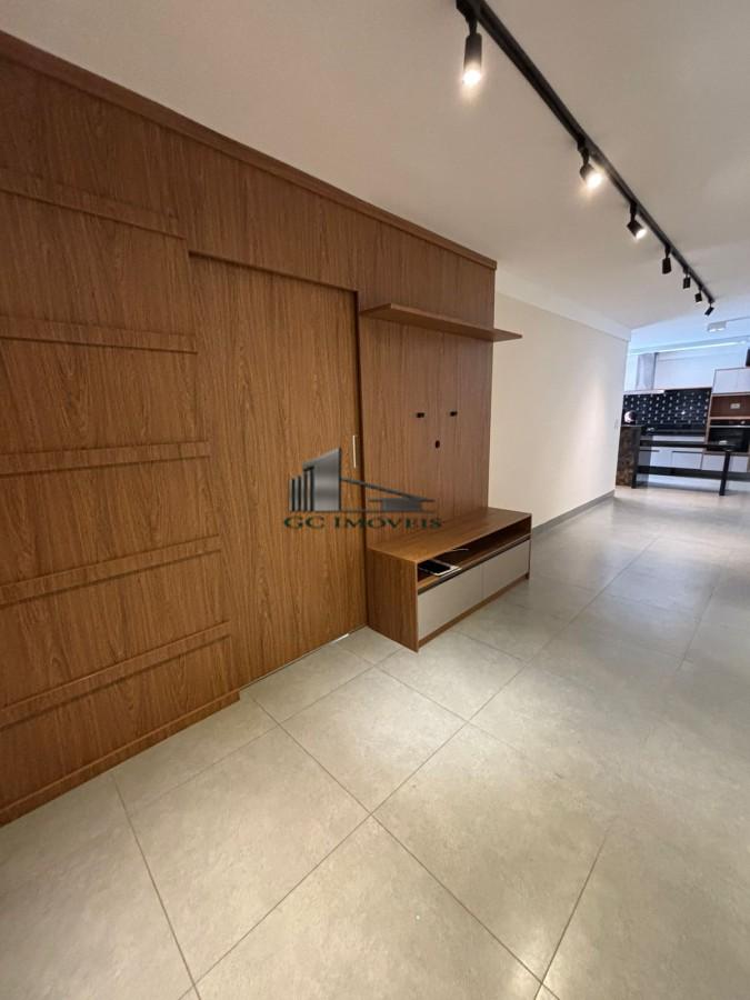 Com 2 dormitórios, sendo 2 suítes com armários planejados e a suíte principal com ar condicionado, sala ampla com painel de TV planejado e porta em madeira para divisão dos cômodos, trazendo mais privacidade para os quartos. Despensa, lavabo, cozinha repleta de armários planejados, balcão com iluminação em LED, fogão cooktop 5 bocas, coifa, forno elétrico, churrasqueira e ar condicionado, área de serviço fechada com tanque e armários planejados, corredor aberto com chuveirão. Garagem coberta para 2 carros.