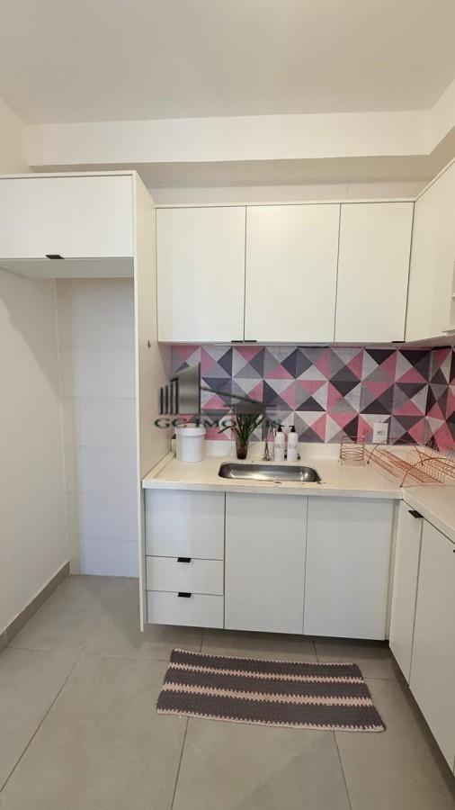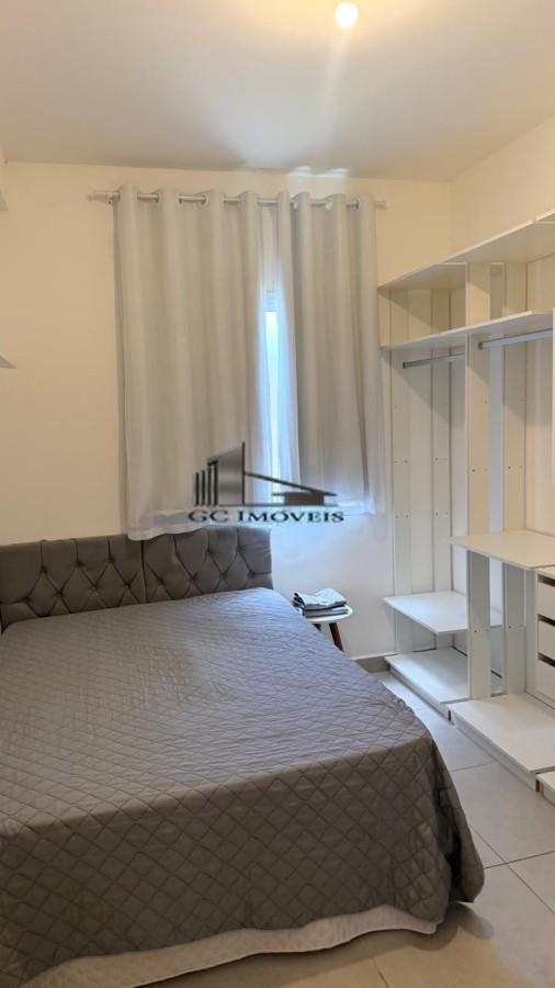 Conta com 1 dormitório com armários, ar-condicionado e cama de casal. Banheiro com box blindex. Sala com sacada, equipada com sofá, painel de TV e mesa de vidro para 4 lugares.