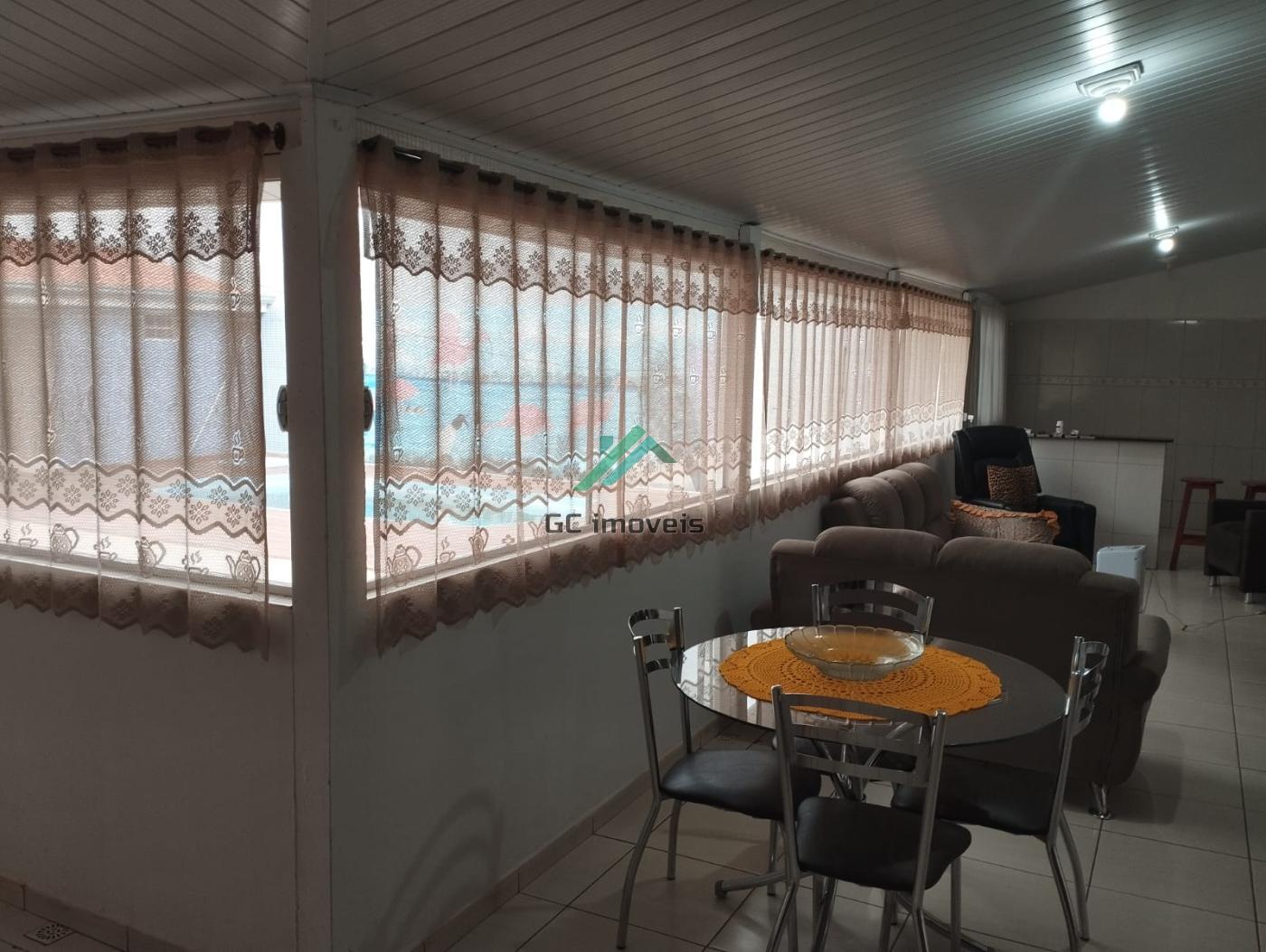 Com 4 dormitórios (1 externo), sendo 1 suíte, possui 3 banheiros , lavandeira coberta, sala de TV, sala de jantar, cozinha, garagem coberta para 2 carros, portão eletronico