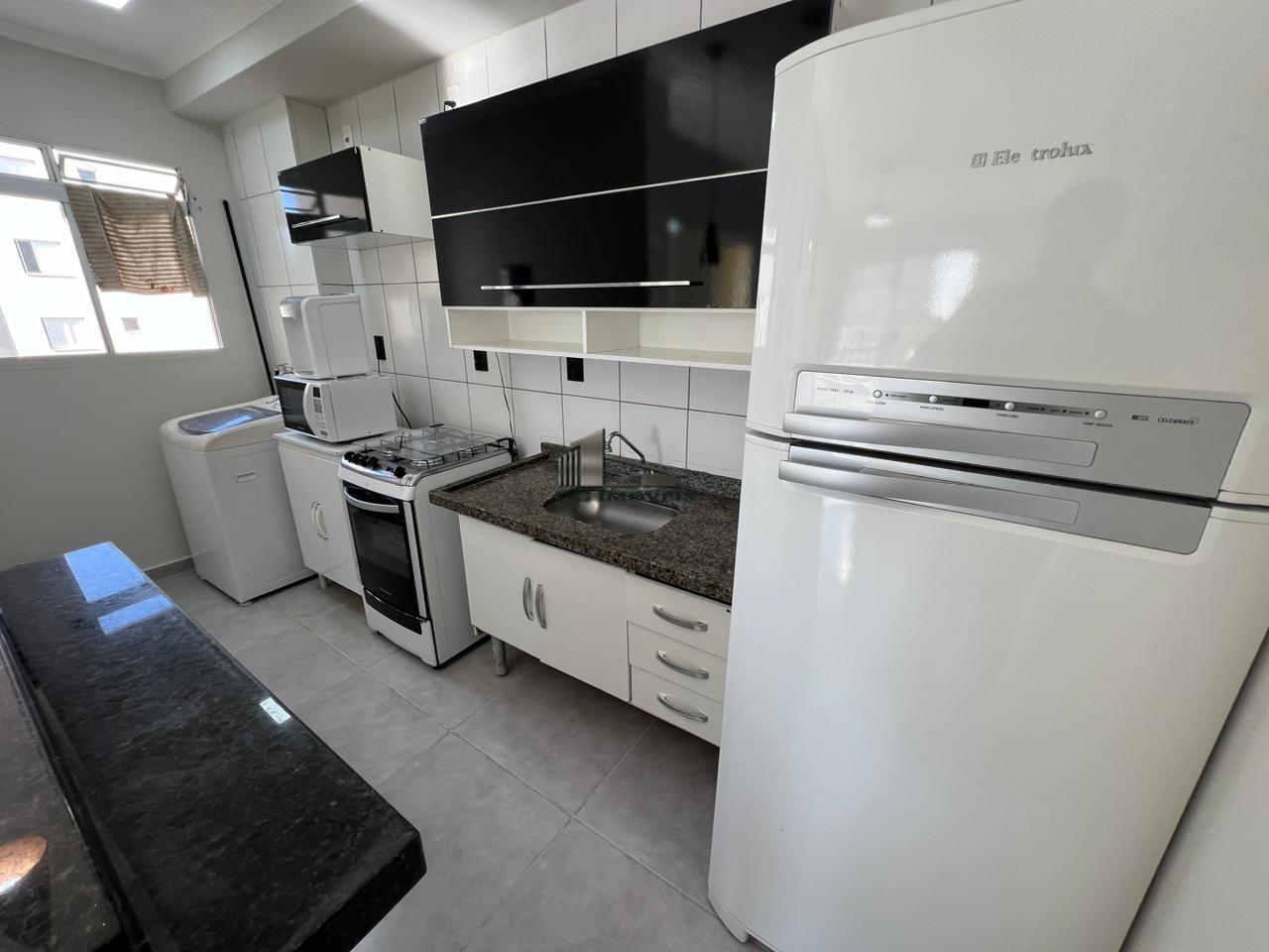 Apartamento recém reformado e mobiliado com: geladeira, sofá, cama, máquina de lavar, microondas, bebedouro, mesa, painel e guarda roupas