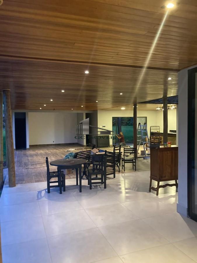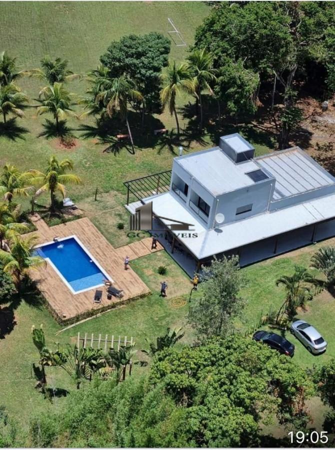 São 24.200 m² de terreno (1 alqueire), com acabamento de alto padrão e estrutura completa. A casa principal conta com quatro suítes, lavabo, área gourmet com dois banheiros equipados com chuveiro e esquadrias de qualidade. Dispõe ainda de piscina, campo de futebol, barracão e casa de caseiro.