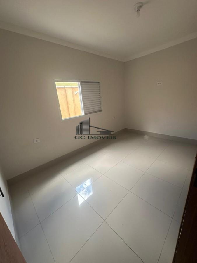 Com 3 dormitórios, sendo 1 suíte, possui 1 banheiro social, sala com pé direito alto integrada com a cozinha, área de serviço coberta e garagem coberta para 2 veículos.