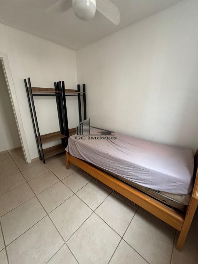 Apartamento totalmente mobiliado, incluindo sofá, painel, TV, mesa com 4 cadeiras, armários na cozinha, geladeira, fogão, máquina de lavar, cortinas na sala e no quarto principal, cama de casal, cama de solteiro e arara organizadora.