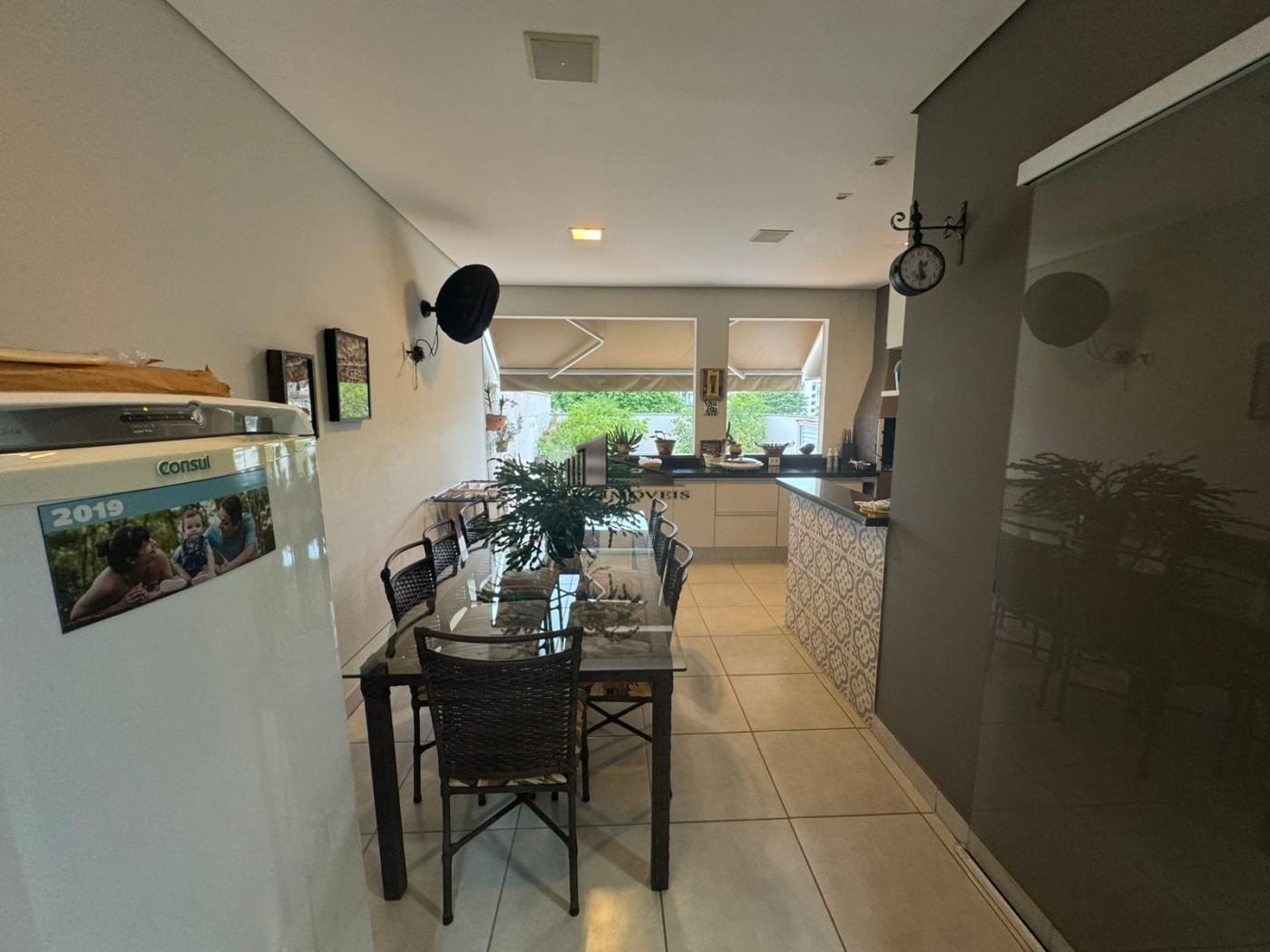 Com 3 dormitórios, sendo 1 suíte, ambos com armários planejados, sala com pé direito alto, cozinha com armários planejados, área gourmet com churrasqueira, ar condicionado instalado na sala e nos quartos, área de serviço, jardim de inverno, quintal com armário para despensa, garagem coberta com capacidade para 2 veículos.