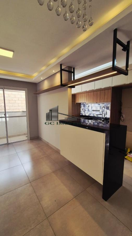 Com 2 dormitórios, ambos com ventilador de teto e armários planejados, banheiro é totalmente planejado, garantindo melhor aproveitamento do espaço. A sala possui rebaixamento em gesso, iluminação em LED, painel de TV e ar-condicionado, além de acesso à sacada. A cozinha é rica em armários planejados, integrada à área de serviço.
