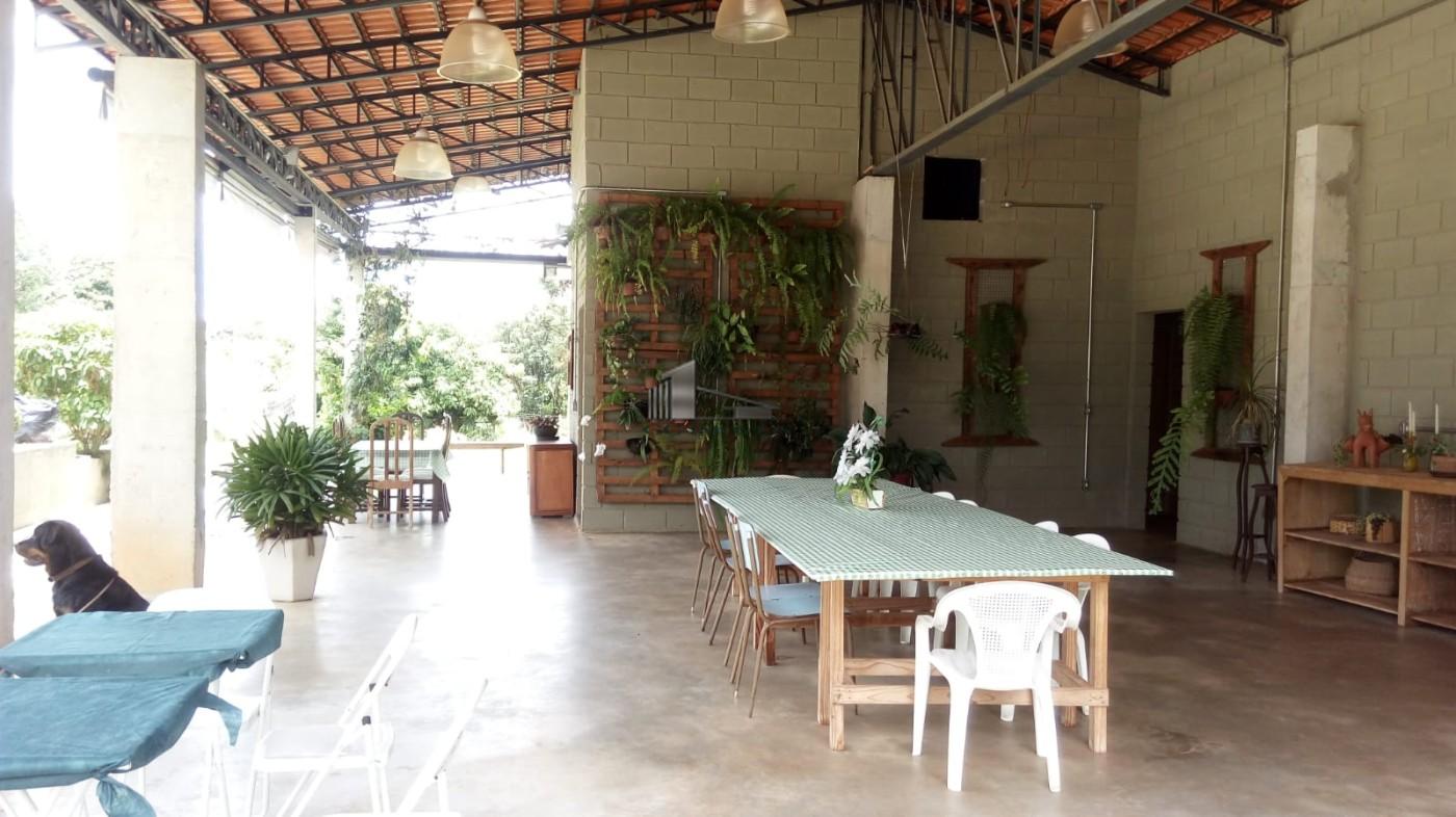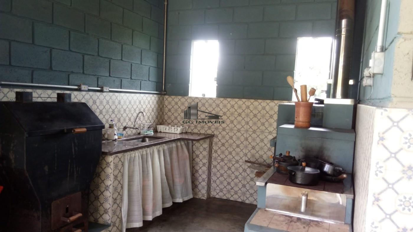 O imóvel conta com barracão de 300 m², equipado com banheiros e cozinha.
