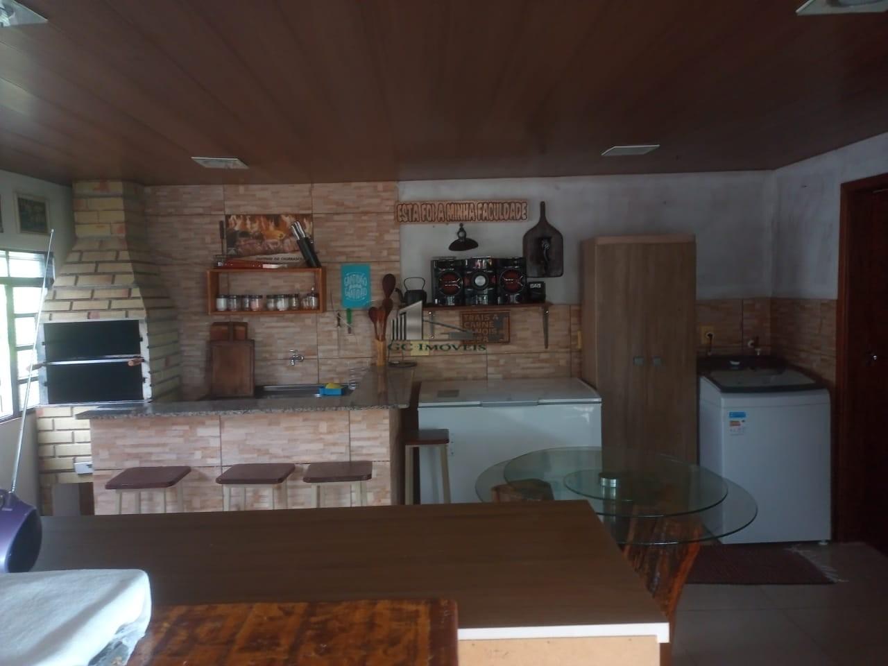 A casa possui três dormitórios, sendo uma suíte (banheiro da suíte com acabamento a ser finalizado), além de mais três banheiros. Dispõe de sala e cozinha integradas à área de churrasqueira, oferecendo um ambiente funcional e ideal para convivência. Imóvel totalmente avarandado e com estacionamento na frente da casa.