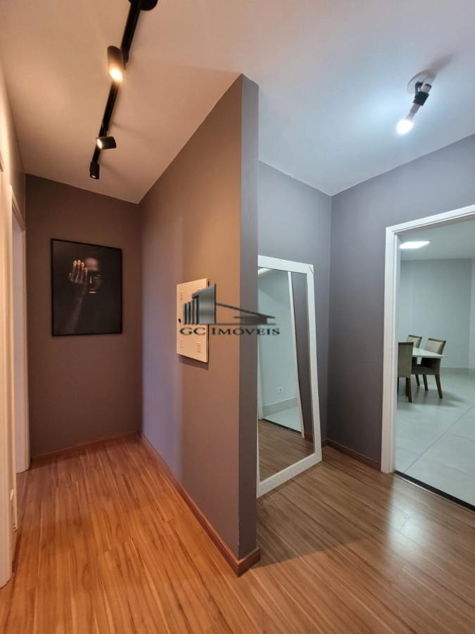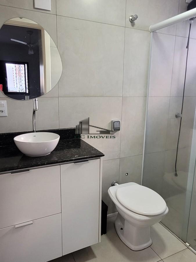 3 dormitórios, sendo uma suíte, 1 banheiro sociais e 1 lavabo. Possui sala espaçosa para dois ambientes e com sacada, cozinha com armários planejados, área de serviço com armários, ambientes bem distribuídos e excelente iluminação. Dispõe de 1 vaga de garagem coberta.