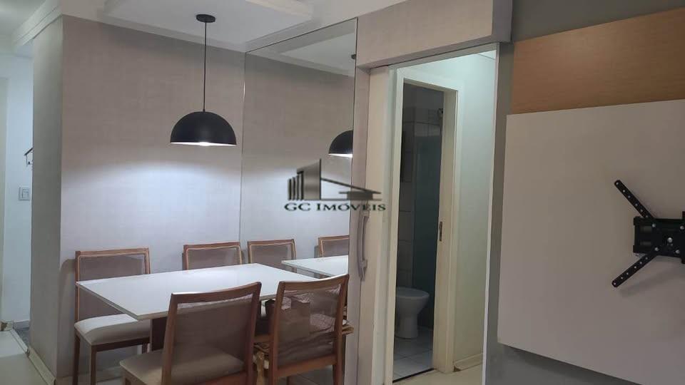 Com 2 dormitórios, 1 banheiro, sala de jantar integrada à sala de TV com painel, mesa para 4 lugares e porta divisória que garante mais privacidade à área íntima. Possui sacada.