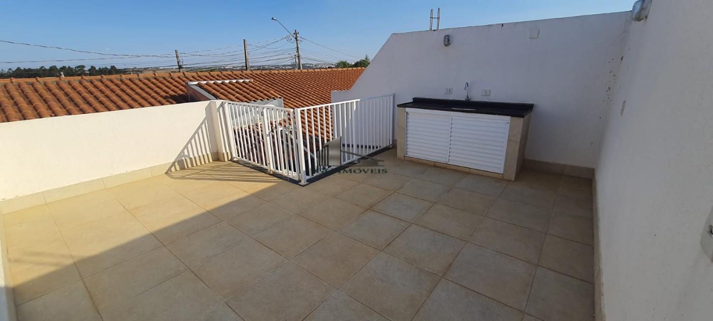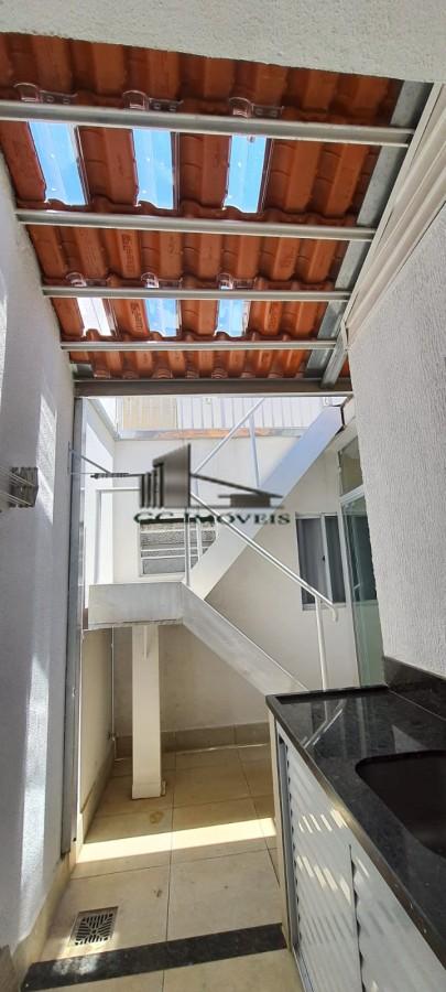 Lavanderia coberta com pia em granito, gabinete e caixa d’água de 500 litros. Corredor lateral com escada de acesso ao terraço no piso superior, onde está localizada a área de churrasco descoberta, murada, com pia em granito e gabinete, além de vista para a cidade.