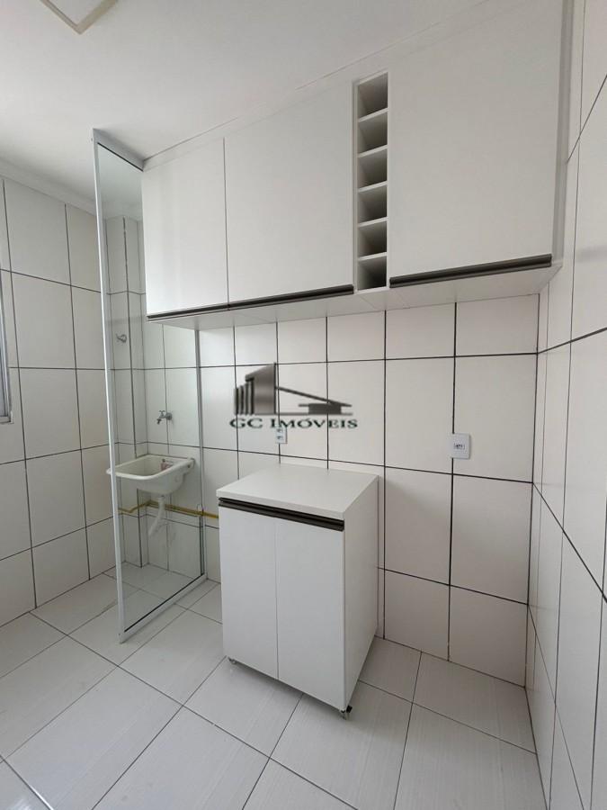 Com 2 dormitórios, possui 1 banheiro com box bllindex, sala com sanca de gesso, cozinha com armários planejados e blindex para fazer a separação da área de serviço, garagem para 1 veículo.