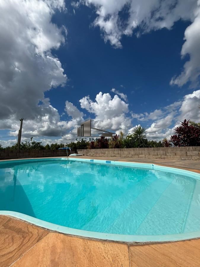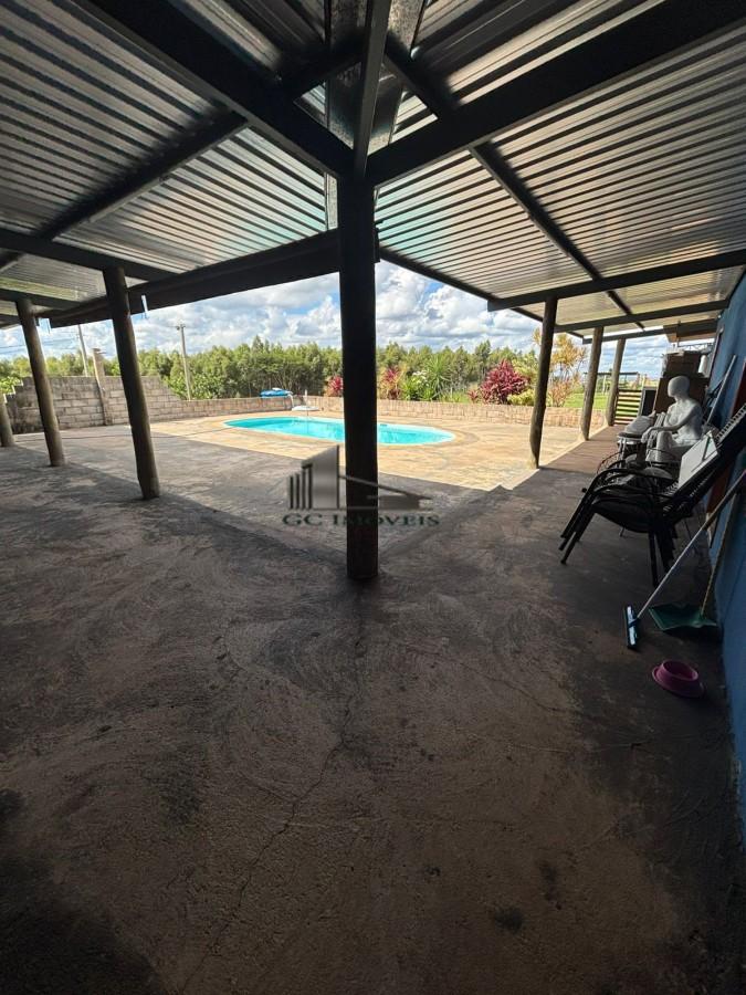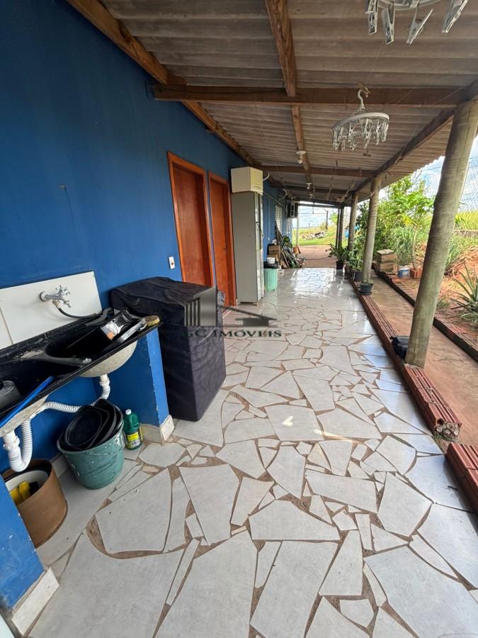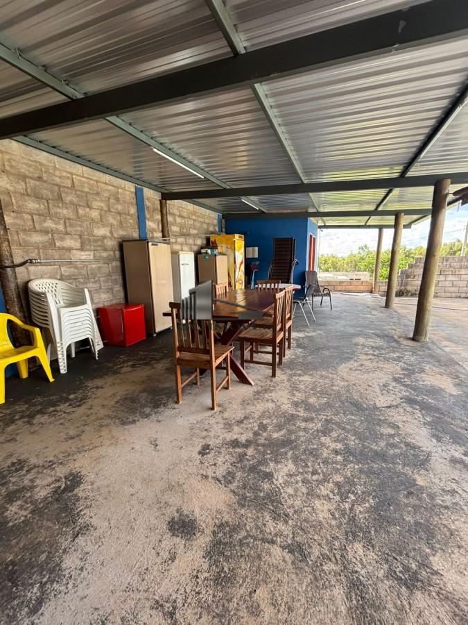 A chácara possui ainda lavanderia coberta, quarto de despejo, banheiro social interno, além de garagem coberta para dois veículos.