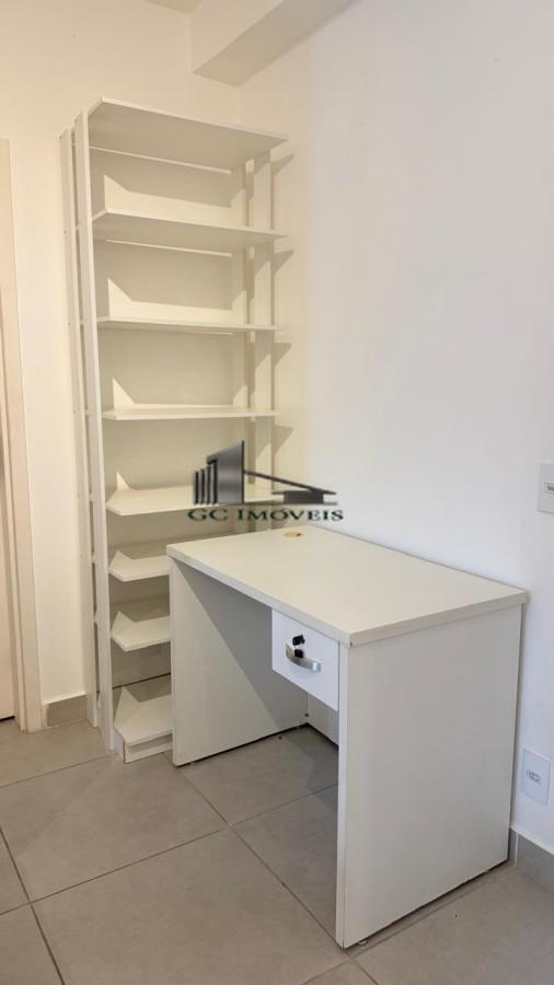 Conta com 1 dormitório com armários, ar-condicionado e cama de casal. Banheiro com box blindex. Sala com sacada, equipada com sofá, painel de TV e mesa de vidro para 4 lugares.